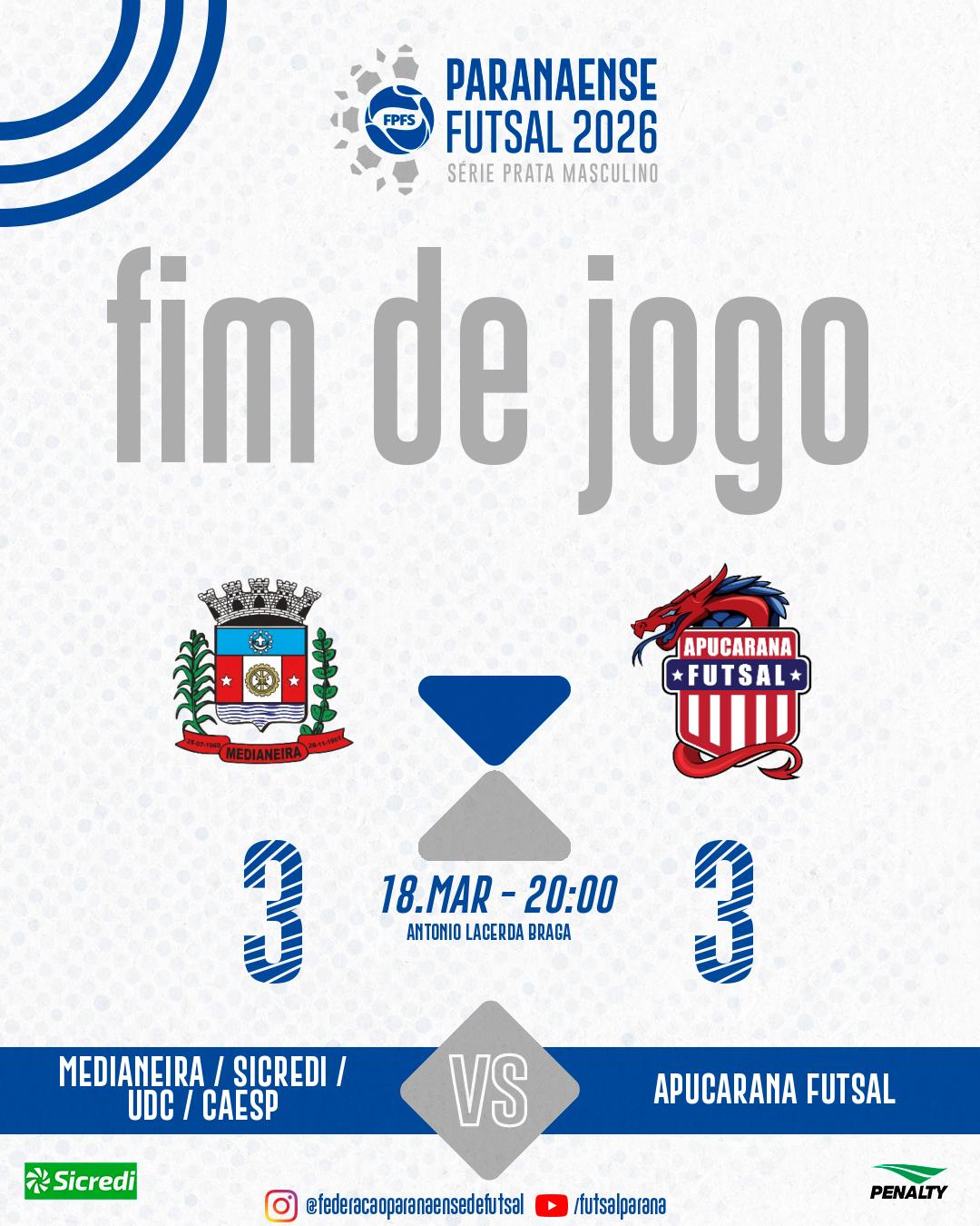 O Medianeira Futsal estreou em casa pelo Campeonato Paranaense de Futsal Série Prata com um empate em 3 a 3 diante do Apucarana Futsal, em partida disputada na última quarta-feira. O confronto marcou o primeiro jogo da equipe diante da torcida na competição.